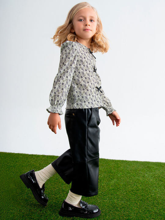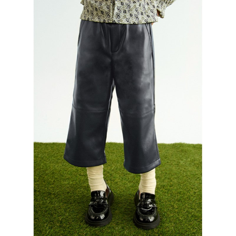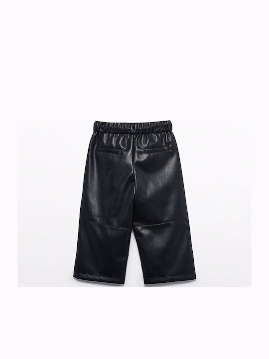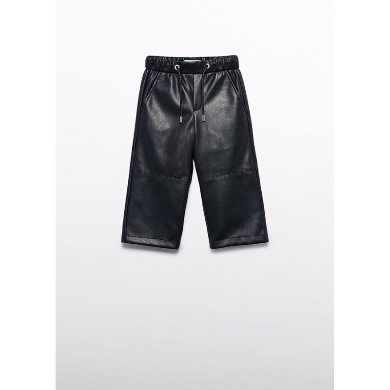 Stilingos, lengvai krentančios ir puikaus dizaino laisvalaikio kelnės mergaitėms. Minkštas eco odos pakaitalo audinys suteiks išskirtinumo, o puošnumo suteikia metalinės aukso spalvos detalės. Patogios kišenės. Viduje patrumpintas pamušalas.