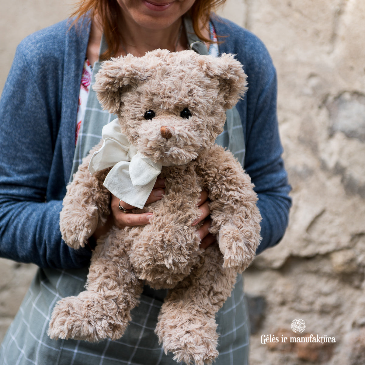 Aukščiausios kokybės rankų darbo pliušiniai žaislai. Labai švelnus ir minkštas, pilkai rudos kakavinės (taupe) spalvos meškučio kailiukas. Negalėsite šio pliušinuko paleisti iš rankų 🙂.