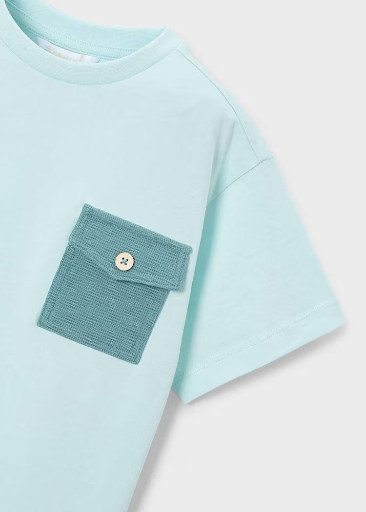 Mayoral trijų dalių komplektas berniukams. Susidedantis iš dviejų marškinėlių trumpomis rankovėmis ir šortų.