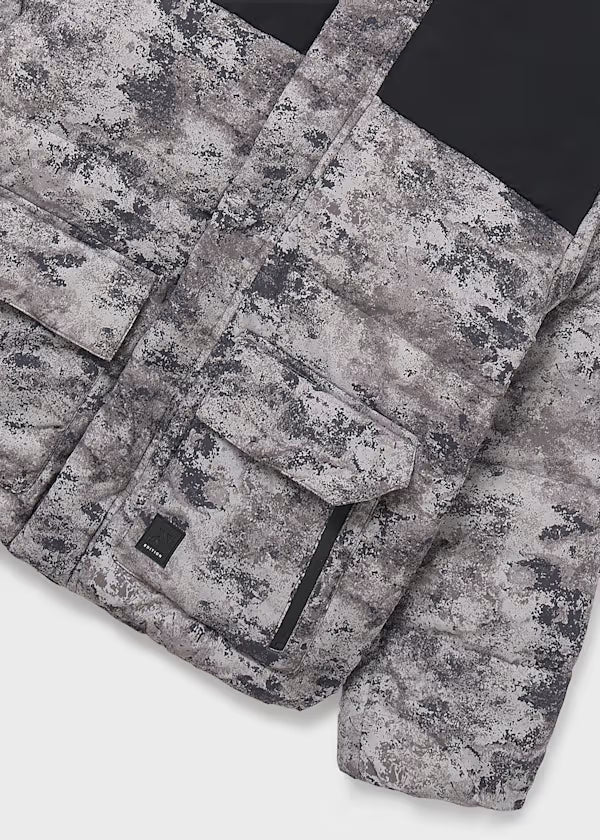 Mayoral žieminė striukė berniukams. Gražių pereinamų spalvų su gobtuvu. Užsisega užtrauktuku ir papildomai spaudėmis. Vidus, minkštas, švelnus audinys. Šiltas bei stilingas pasirinkimas. Kišenės užsegamos spaudėmis ir yra papilgomos kišenės su užrauktukais.