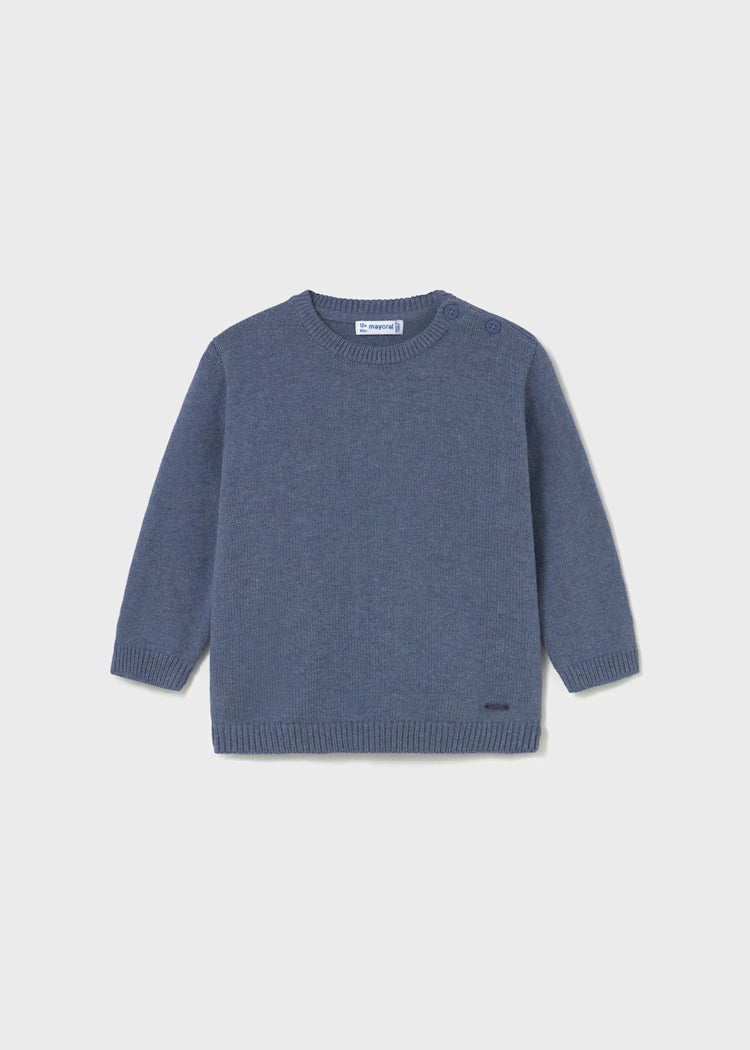 Mayoral megztinis berniukams. Metalo melsvos spalvos. Lygi, ovali kaklo linija, ilgos rankovės. Megztinukas malonus ir šiltas.