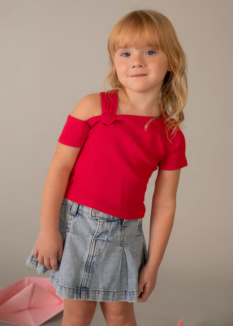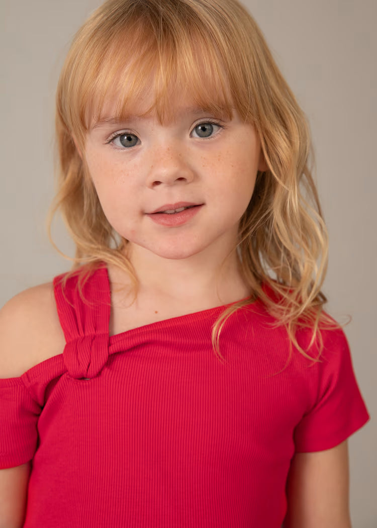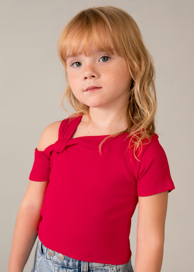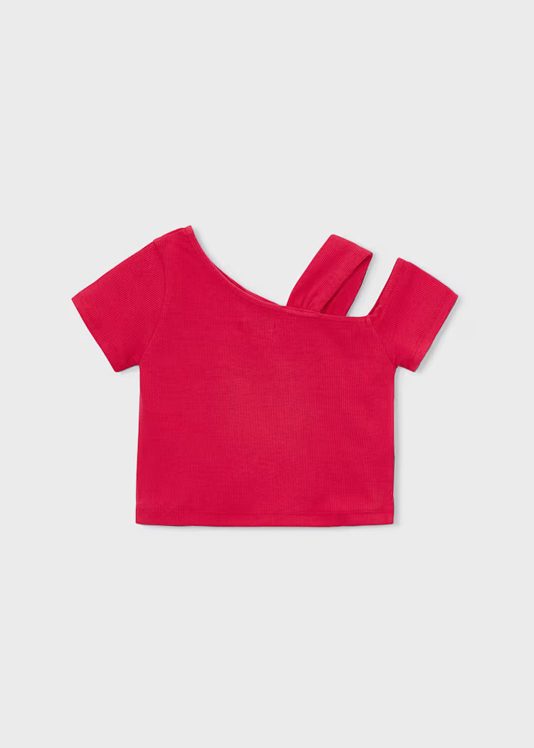 Stilinga, vasariška, ryškios spalvos palaidinė puikiai derės po švarkeliu ar prie bet kokio kito drabužėlio. Išskirtinumo suteikia viena petnešėlė pernerta per audinį.