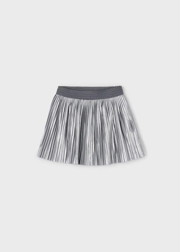 Mayoral gražiai krentantis sidabro spalvos sijonėlis. Puošnumo suteikia žvilgus gražiai krentantis audinys Gražų kritimą palaiko pamušalas ir minštas audinys. Juosmenį apgaubs plati guma.