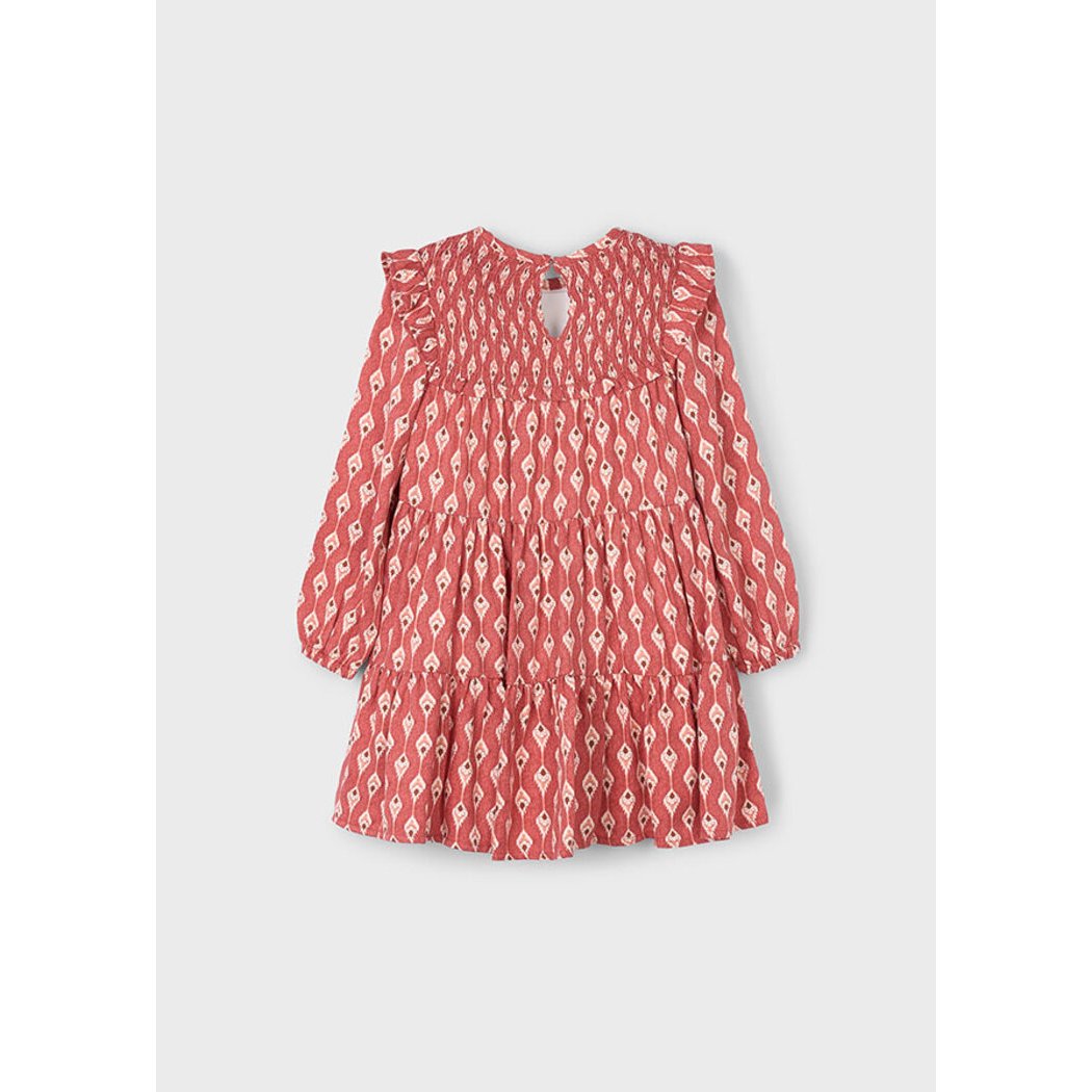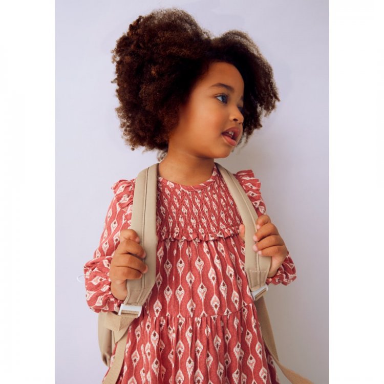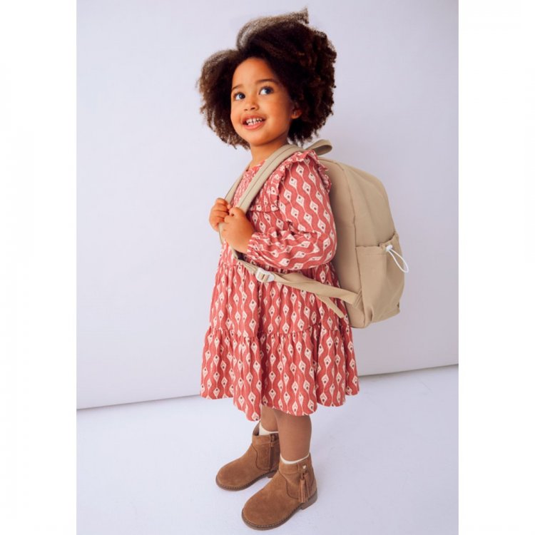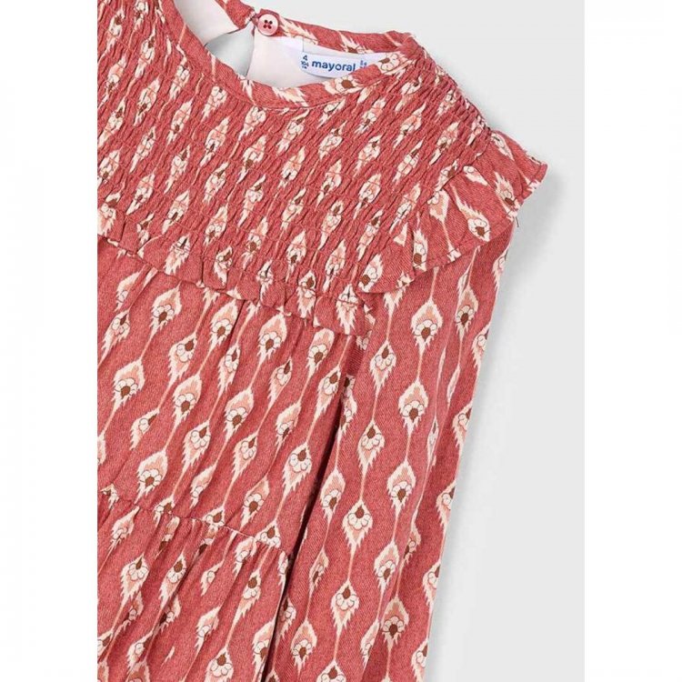 Mayoral lengvai krentanti suknelė su gražiai rauktomis rankovytėmis. Ovali kaklo linija. Suknutės priekis puoštas raukinukais o gražų kriimą palaiko esantis pamušalas.