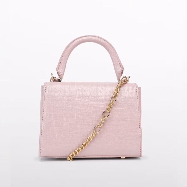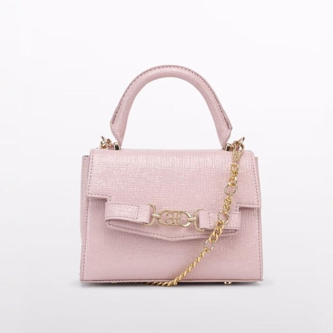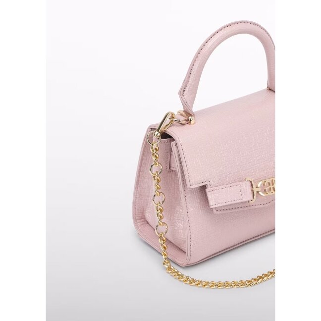 Išskirtinės tekstūros rankinė priekyje dekoruota aukso spalvos logotipu. Viduje erdvus skyrius ir maža papildoma kišenėlė. Aukso spalvos grandinėlės tipo nuimamas, reguliuojamo ilgio pečių dirželis. Patogi dirbtinės odos nusegama rankena. Abu - tiek rankena, tiek dirželis - yra nusegami, todėl rankinę galima neštis ir kaip delninę. Į rankinę lengvai įtalpinsite mobilųjį telefoną. Tai gražus aksesuaras prie šventinės aprangos.